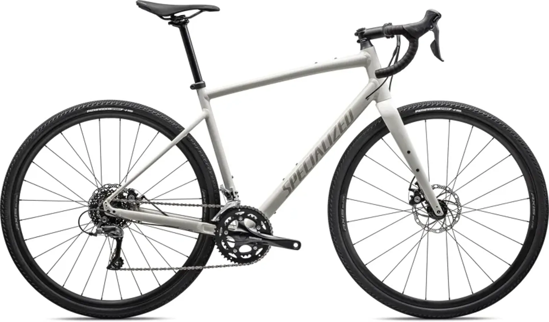 With a premium e5 alloy frame and a full carbon FACT fork the Diverge e5 delivers a fast confident and comfortable ride on road in the dirt and over thick gravel. Shimanoâs Claris 2x8 group gives a wide range of gears for any terrain while Axis Elite alloy wheels and pathfinder Sport 38mm tires provide an efficient ride on pavement with the versatility for hard pack dirt riding.
